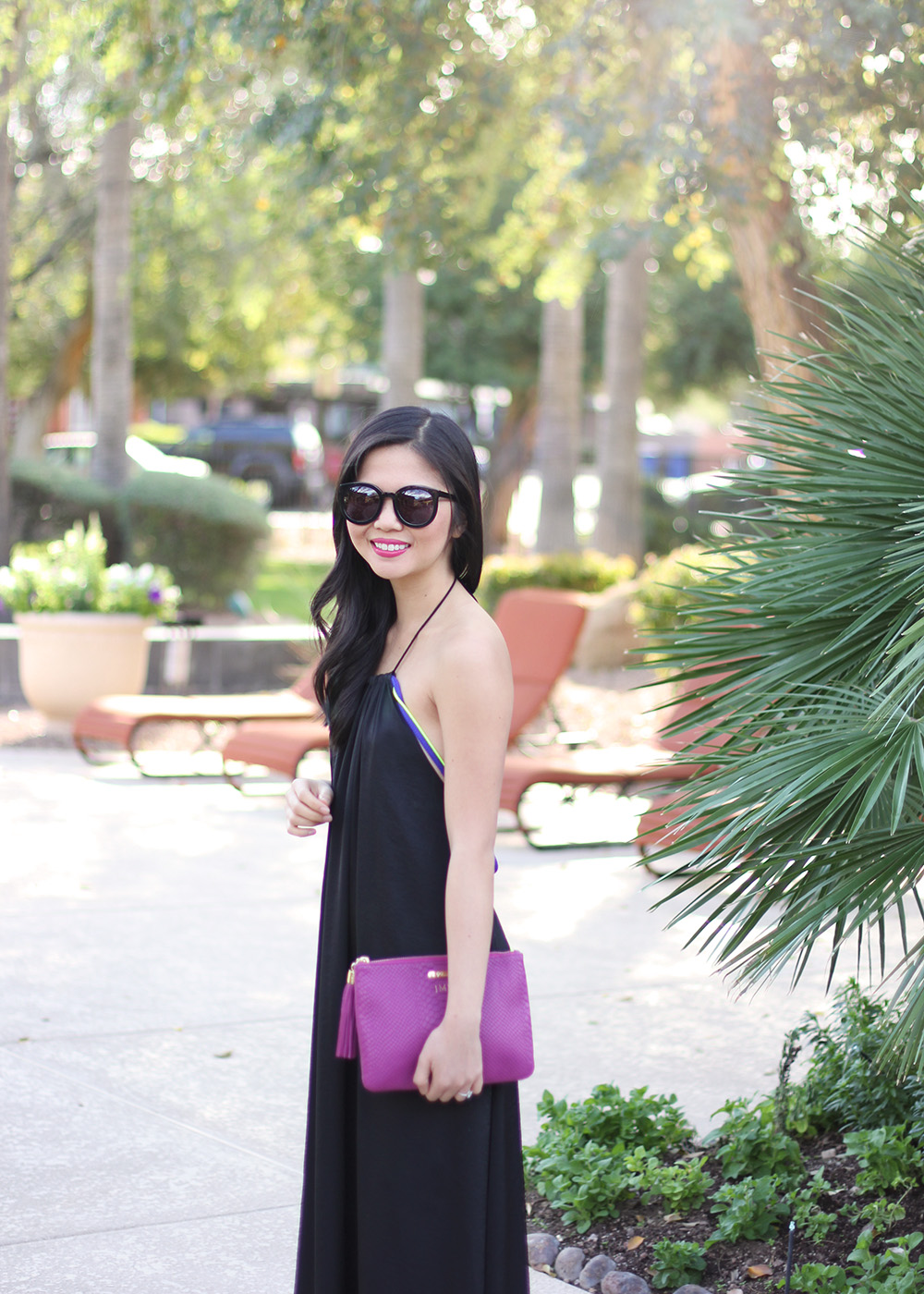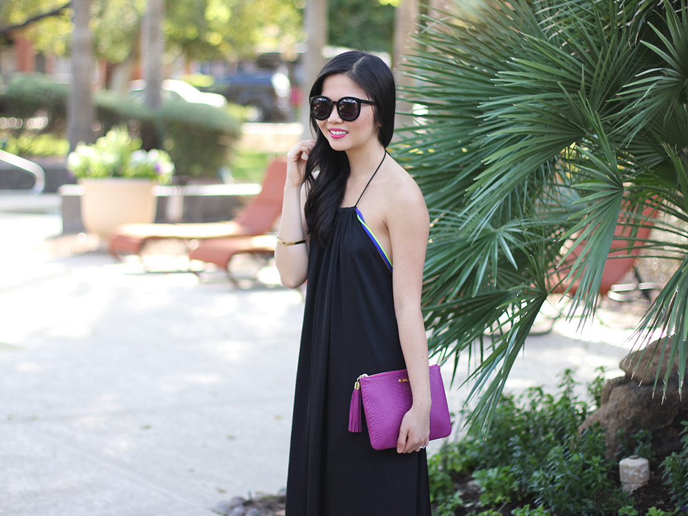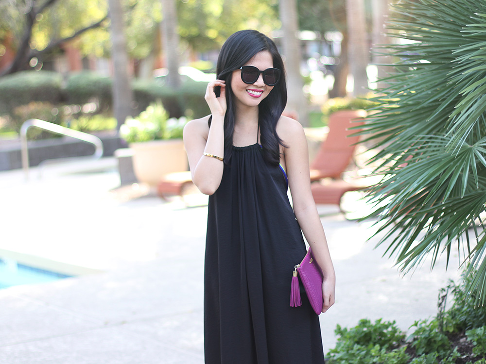 I’ve said it before and I’ll say it again: drapey dresses are kind of my thing and I can’t wait to be living in them come warmer weather. I brought this black coverup with me to Arizona and love the neon cords running down the sides to the open back. I ended up wearing it around and beyond the pool, because there’s nothing better than a dress that does double duty!
