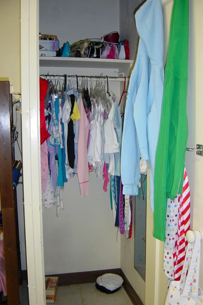 And finally … my glorious closet full of regrettably unfashionable choices. I can guarantee that I no longer own anything in this picture (although I do miss that ice cream pattern tote bag in the bottom right corner). Oh well, college is all about finding yourself, right?