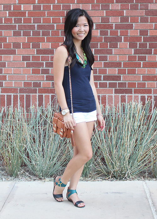 I’ll be spending most of this summer in the library studying for the NY bar exam, so easily thrown together outfits will be a major priority. With this goal in mind, I recently stocked up on a slew of basic tanks from Forever 21 (hello $4!) that’ll pair perfectly with shorts, sandals and a statement necklace. New summer uniform? I think so.