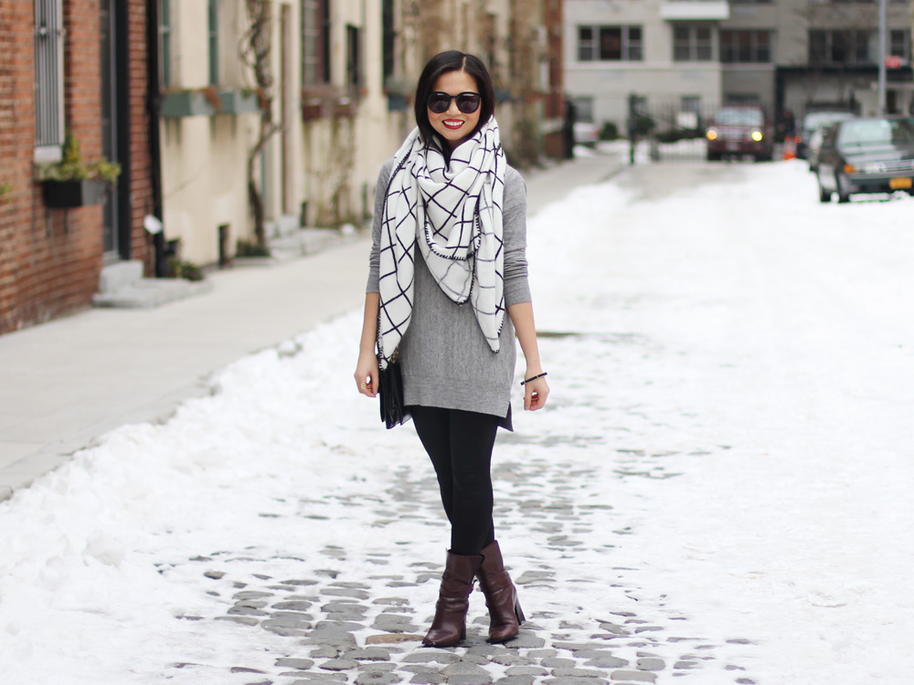 I love a good snow day as much as the next gal, but the magic of a pristine blanket of white lasts for only about fifteen minutes or so. For the rest of the week, everything gray: gray skies, gray slush (ugh) and for me lately, gray outfits. As much as I want to diversify my winter wardrobe, I basically live in long sweaters and leggings during the week. Can you blame me? I’m too busy focusing on not falling over an icy sidewalk!