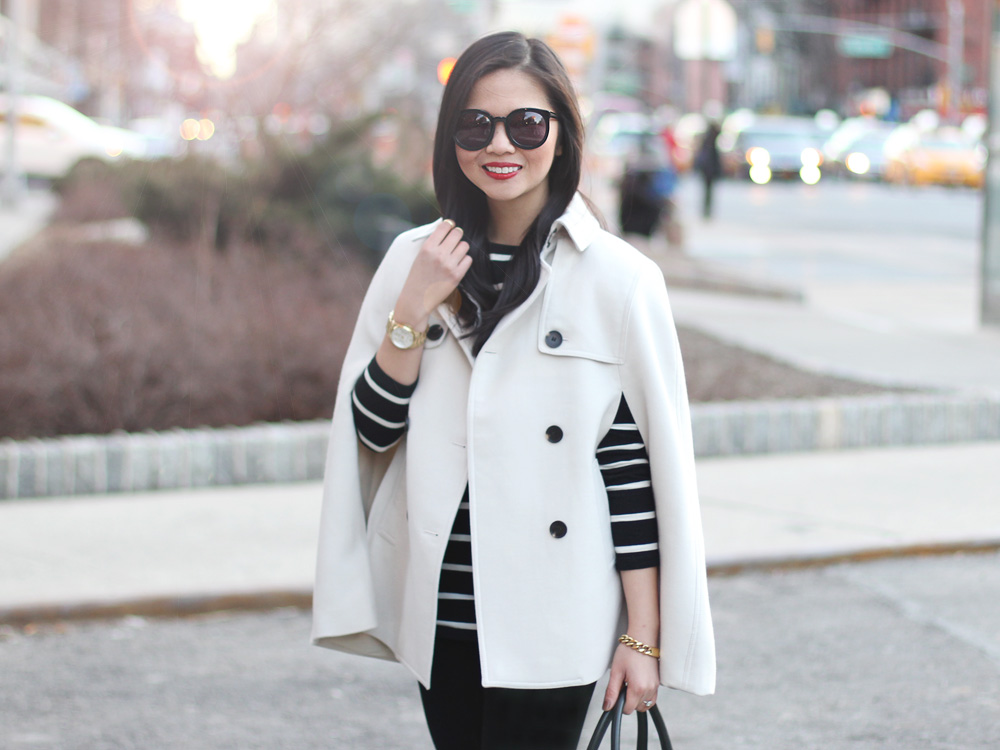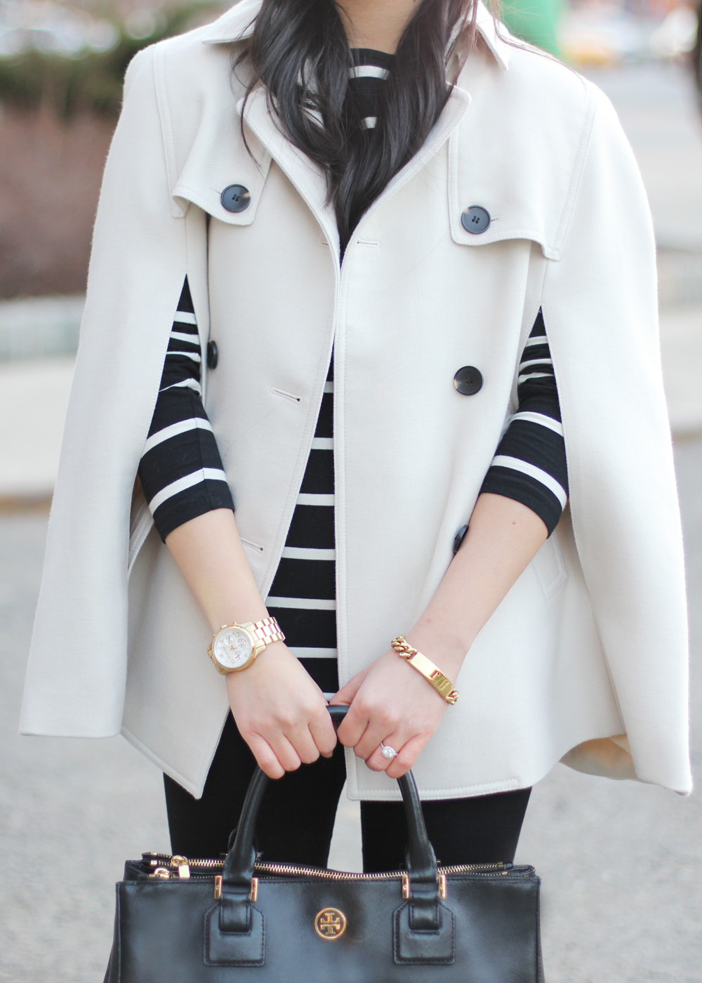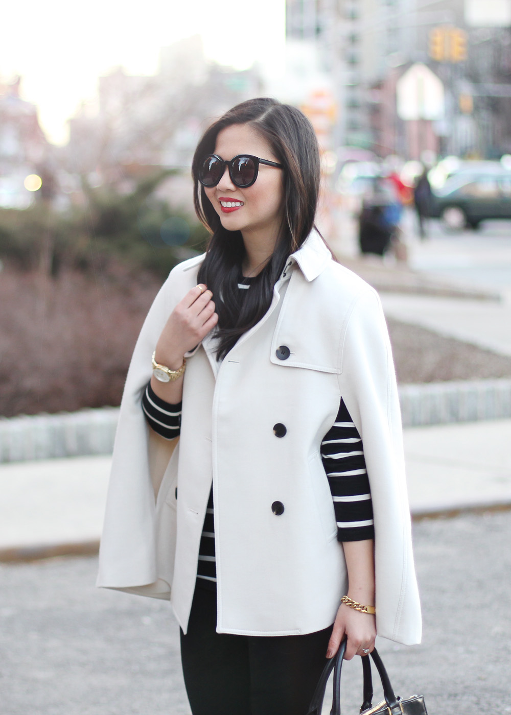 Now I have a coat for nearly every occasion. A puffer jacket for the bitter cold, a trench for rainy days and a wool coat for the chilly days in between. The current focus: spring outerwear. I’m in love with this trench-inspired cape from Ann Taylor. It’s a modern twist on a classic style and I have a feeling I’ll be wearing it all season long. Happy Monday friends!