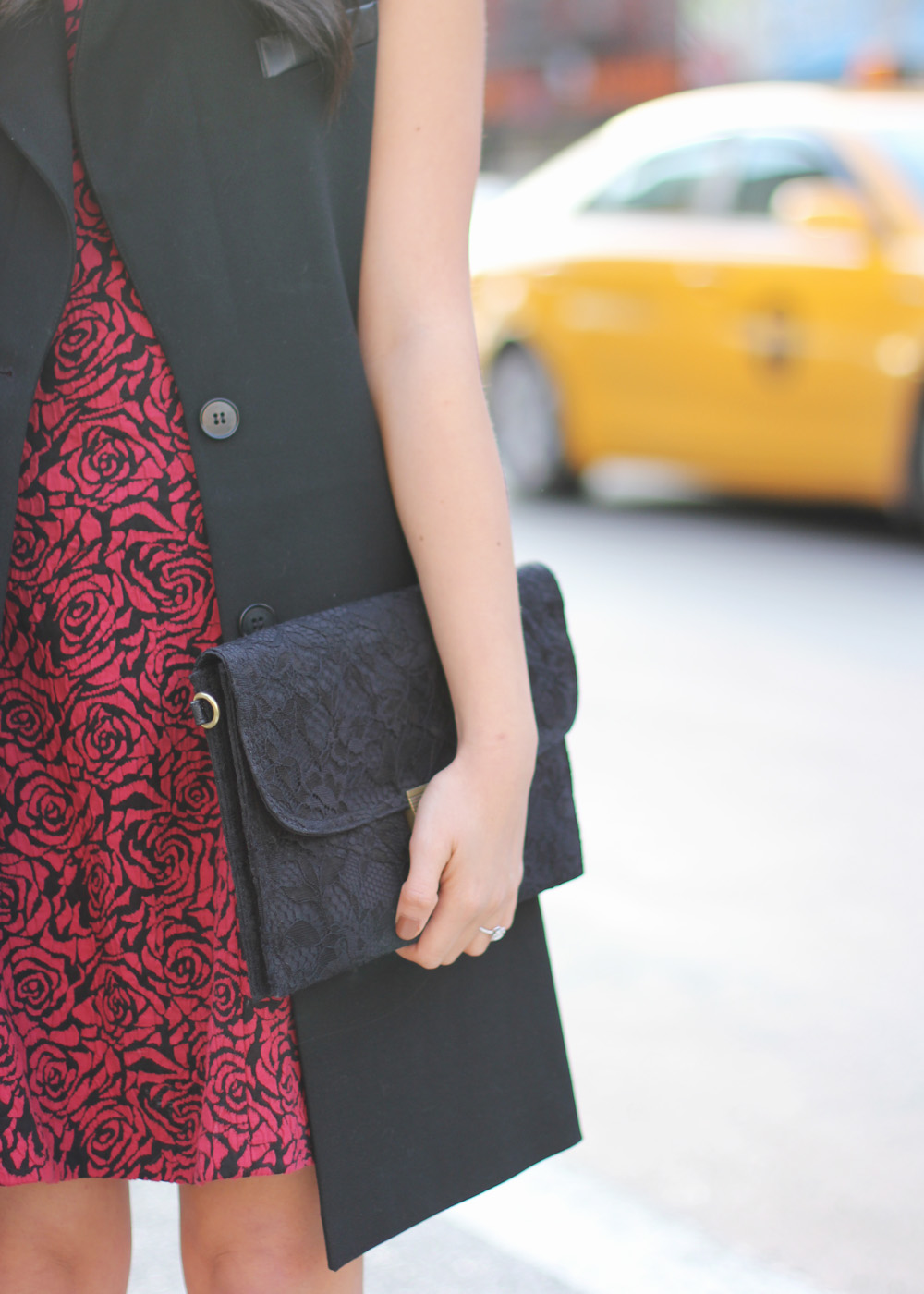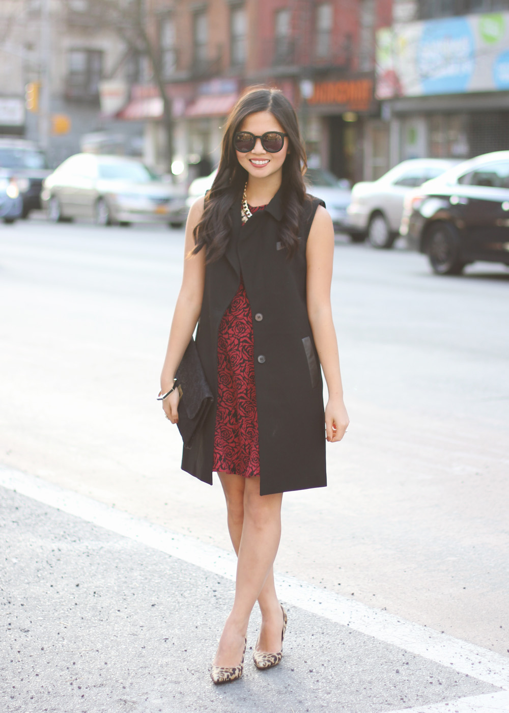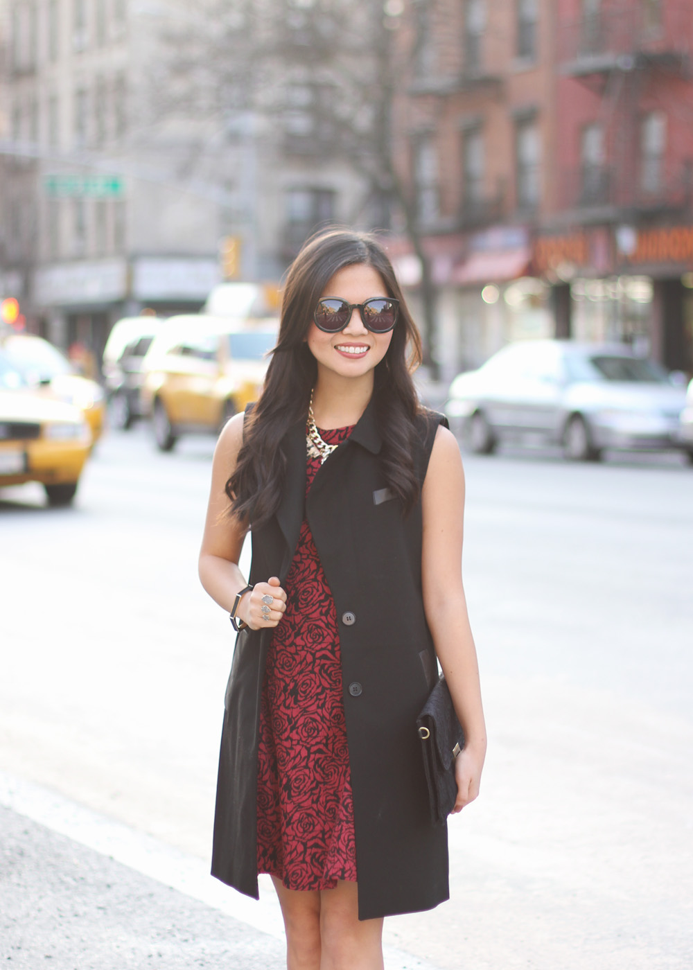 So I’m sleeveless … in November. That’s weird, right? … especially after being bundled up from head to toe all week long. But hey, when life gives you 50°F weather on a Sunday afternoon, you take it and pretend like it’s autumn all over again. I bought this sleeveless trench coat from Ann Taylor a few months back, but never got a chance to wear it until now. And this rose-print dress? Perfectly fine for winter, but way more fun with bare legs. I hope you got a chance to take your favorite fall pieces out for one last spin this weekend … sans sleeves and sans tights.