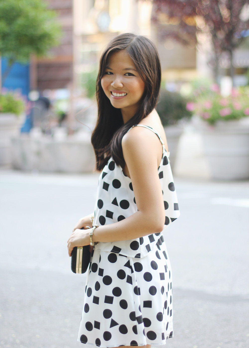 It doesn’t take much for me to fall for a playful print. I laid my eyes on this polka dot pretty and it was love at first sight. Black and white has been my go-to lately, but I still have every intention of keeping it light and easy for the rest of summer. Need proof? Just check out the sweet little surprise in the back!