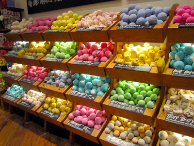 My friend Emily and I visited fabulously fragant-filled store at Mandalay Bay in Las Vegas called Lush. By now, you know that I love anything colorful and here, I felt like a kid in a candy store … except this kid is a hygiene enthusiast and the candy store is full of bath salts.