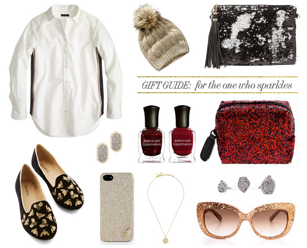 First on the list is a roundup of all things glitter and sequin, because who doesn’t love a little sparkle? I have this druzy double ring and if I had my ears pierced, the matching earring set would be on the top of my list. I think these loafers are the perfect touch of whimsy, but if subtle sparkle is more your thing, this striped shirt might do the trick. I can’t wait to share more gift ideas with you over the next month, but in the meantime, I would love to know what’s your favorite little piece of glitz?