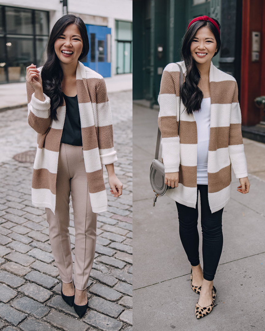 This striped cardigan from Ann Taylor is perfect to wear to work or for work from home!