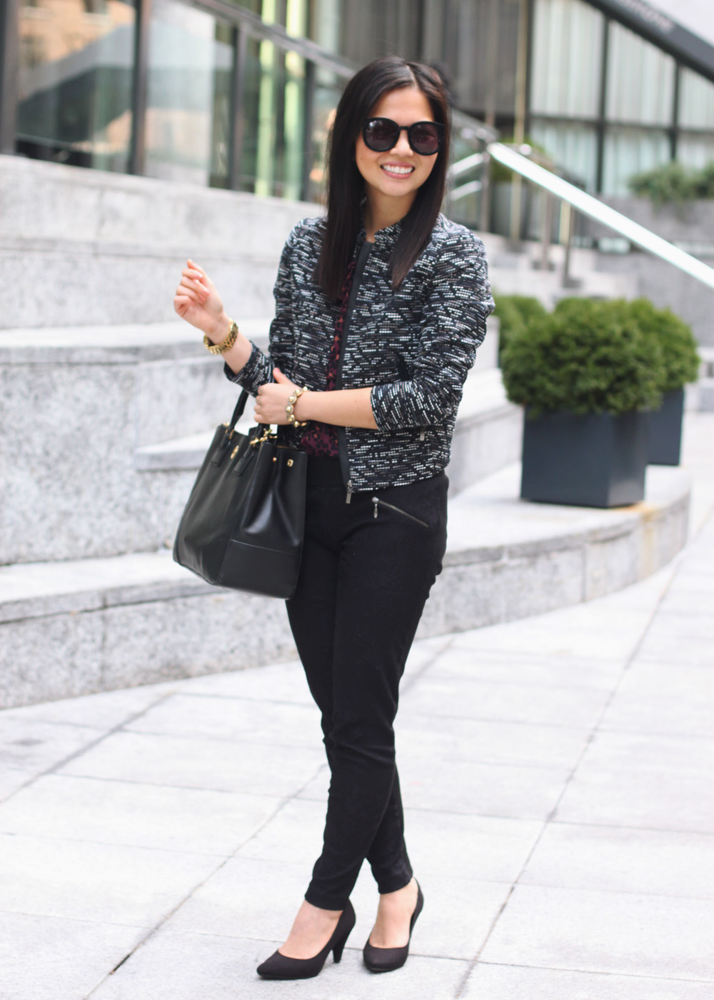 My favorite thing about dressing for the winter (and there aren’t that many) is playing with layers of textures that you just can’t do during warmer weathers. I’m talking about a chiffon blouse underneath a tweed jacket over lace pants and topped off with a pair of suede shoes. I feel like a children’s book with all the tactile experiences going on, but I wouldn’t have it any other way.