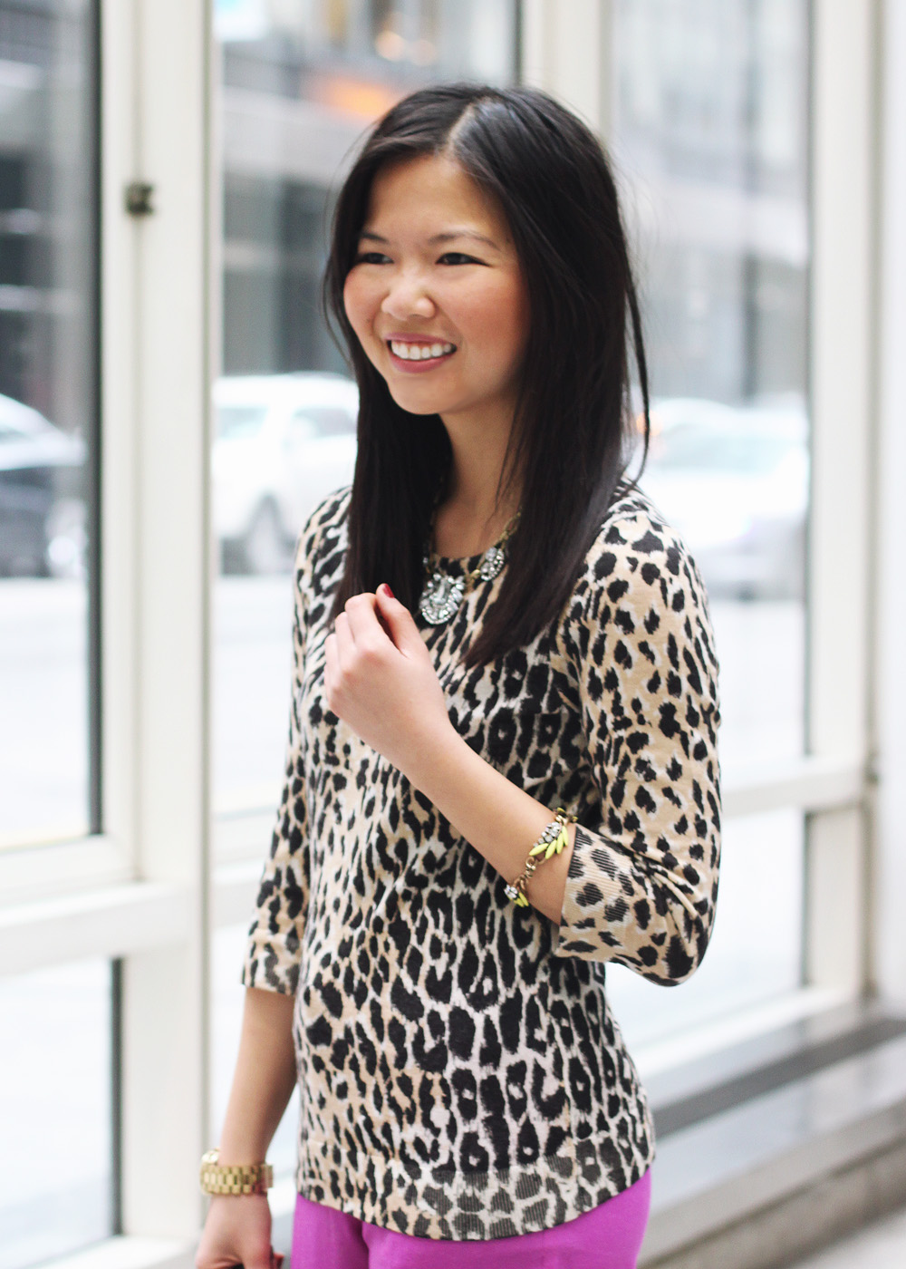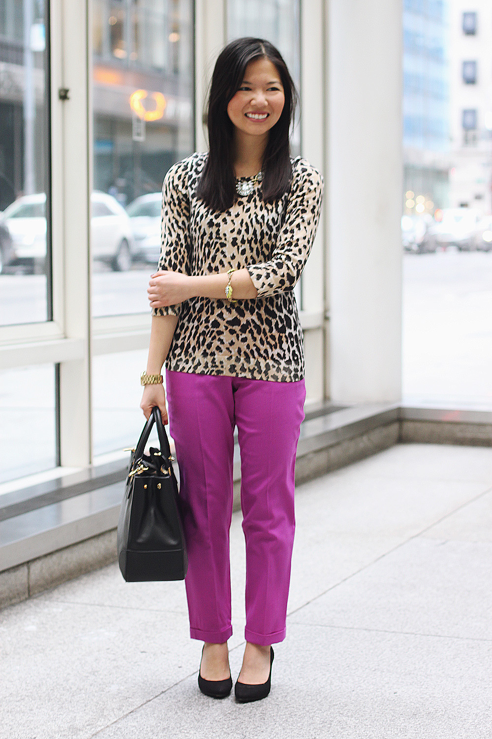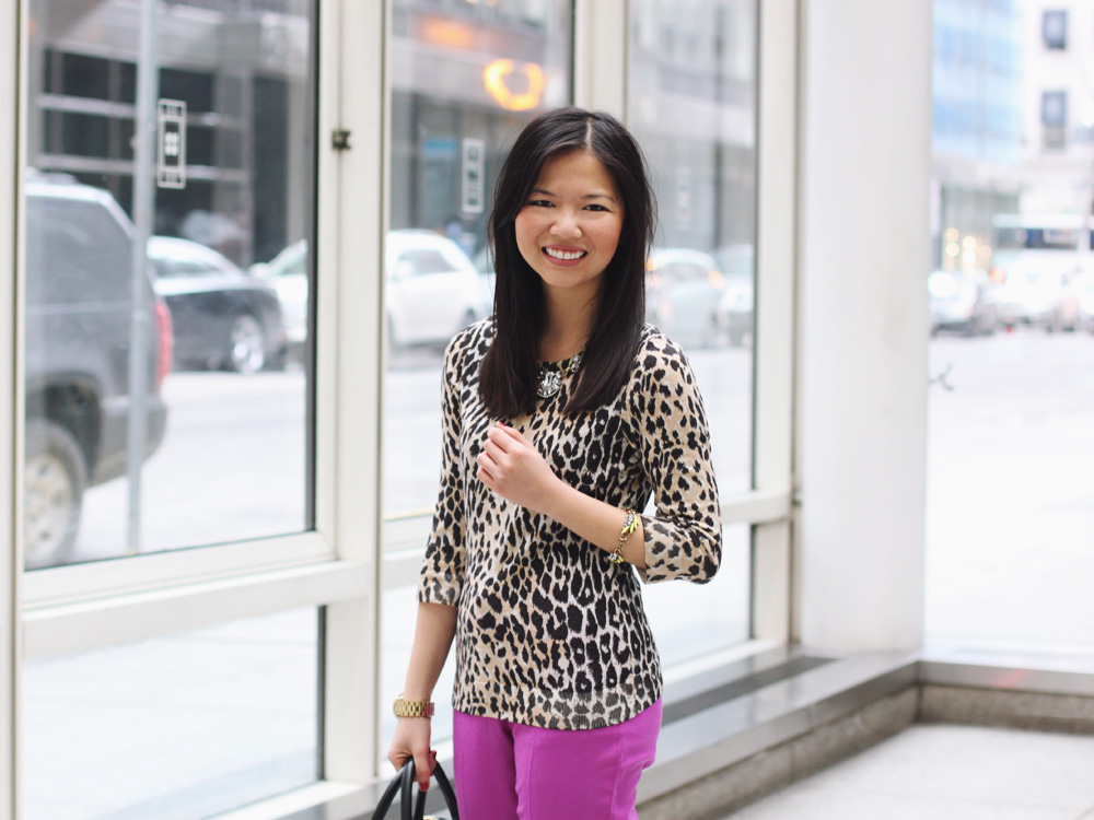 These days, you can usually find NYC sidewalks filled with piles of dirty snow and crowds of giant puffer coats. And then there’s me: the nut job in a pair of brightly colored pants (hello radiant orchid!) and a loud leopard top. It’s a head-turning combo for sure, but I can’t help feel a little better about this whole polar vortex situation when my outfit gives me hope of warmer days to come.