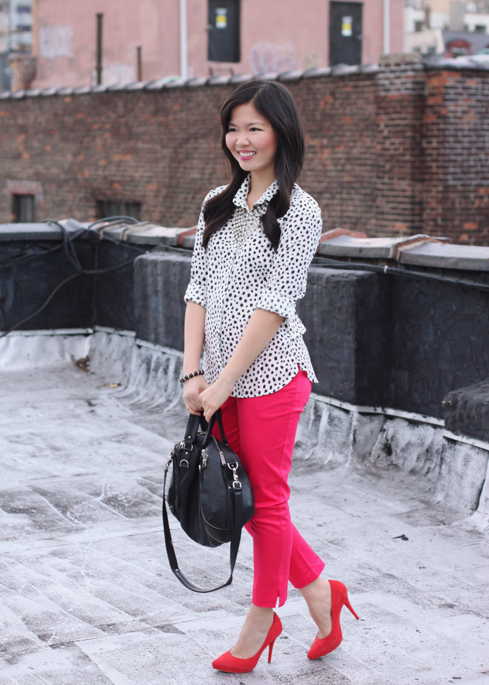 Last week, I loaded up my outfits with major doses of color. This week, I’m toning it down slightly — keeping my outfits bright, but grounded in neutral pieces. Color and class aren’t mutually exclusive. And whether you prefer to go all out or just add a few pops, there’s an appropriate level of color for everyone.