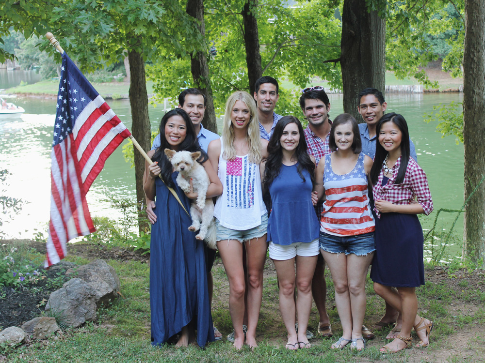 Our days were filled with paddle boarding, cornhole and my first time ever playing Cards Against Humanity (I’ve never laughed so hard in my life!). We sipped on sweet sparkling cocktails on the deck all afternoon. We played dress up and snapped a few patriotic portraits (my friends are such good sports). I brought along my favorite new maxi, but truth be told I spent most of my time in a swimsuit and running around barefoot.
