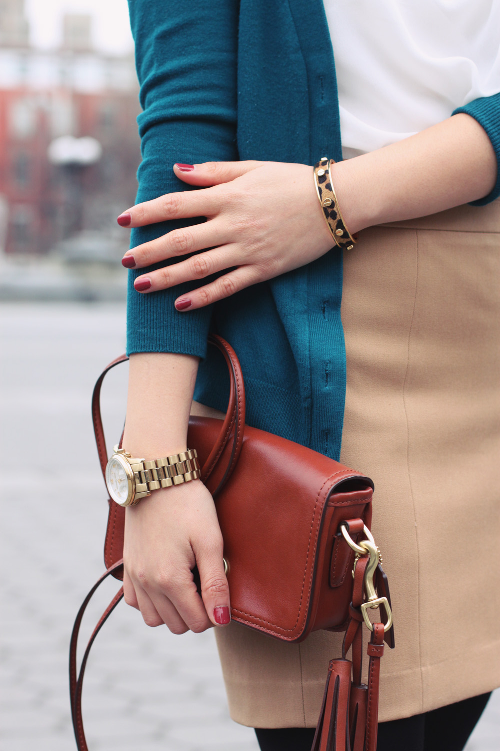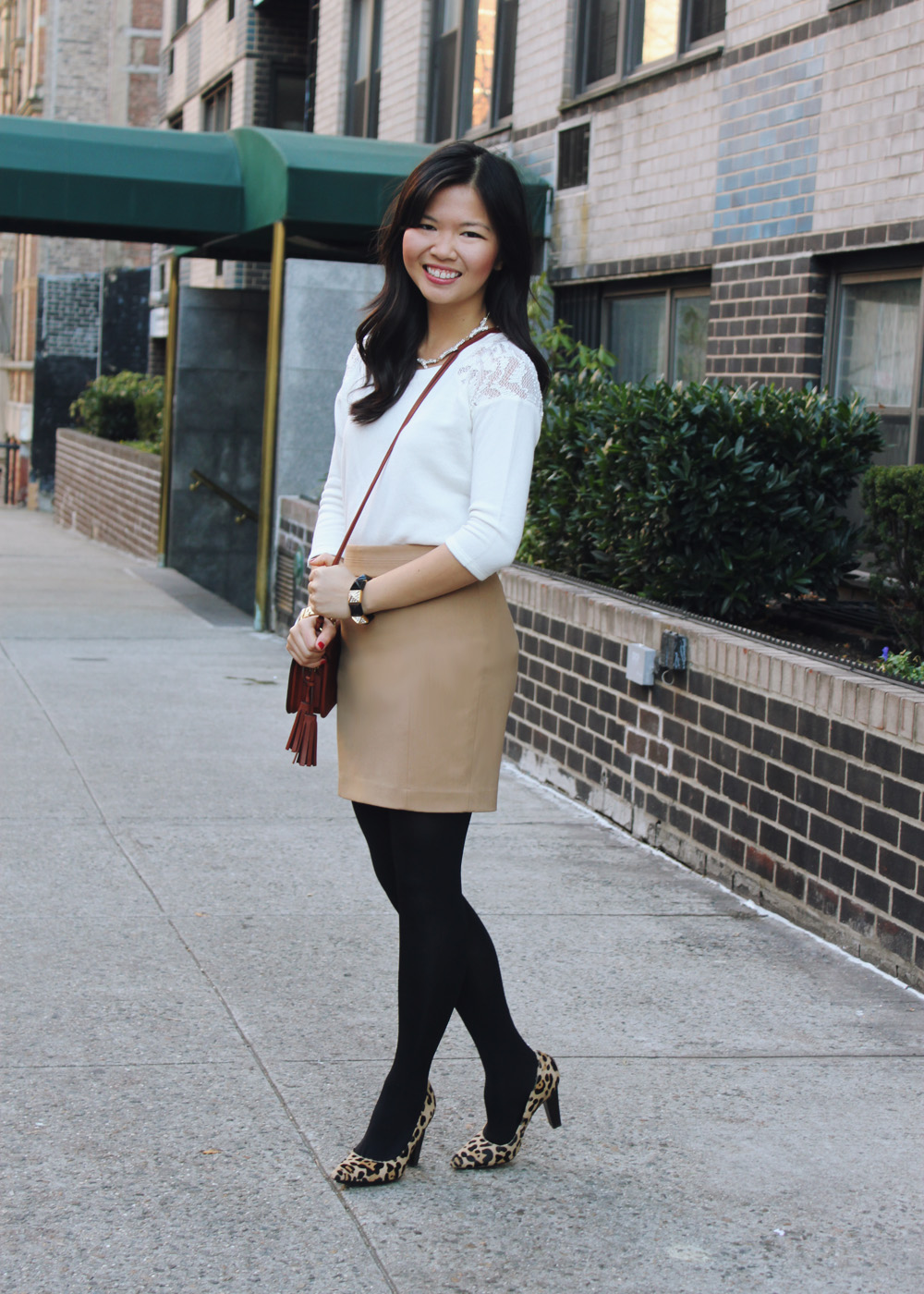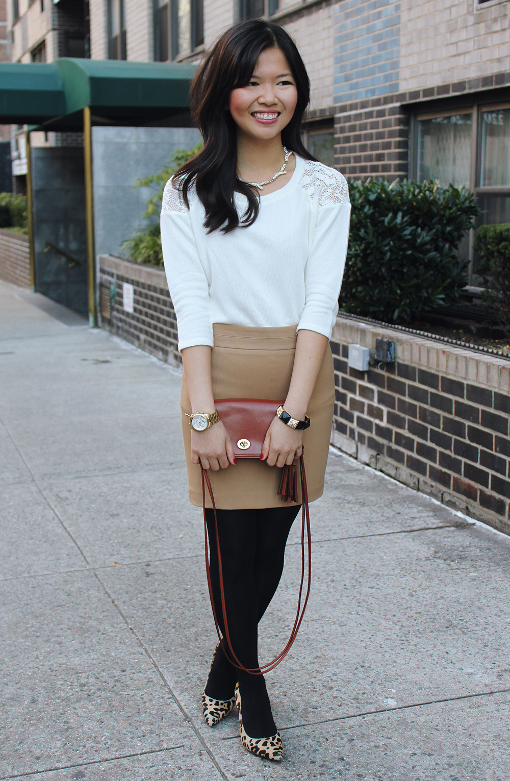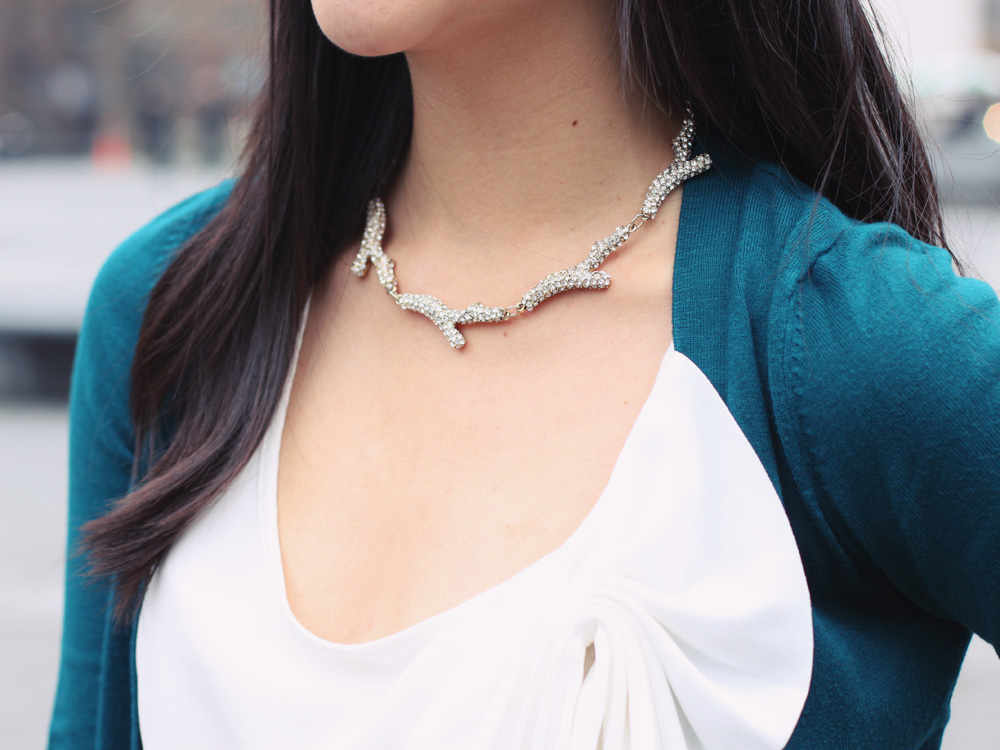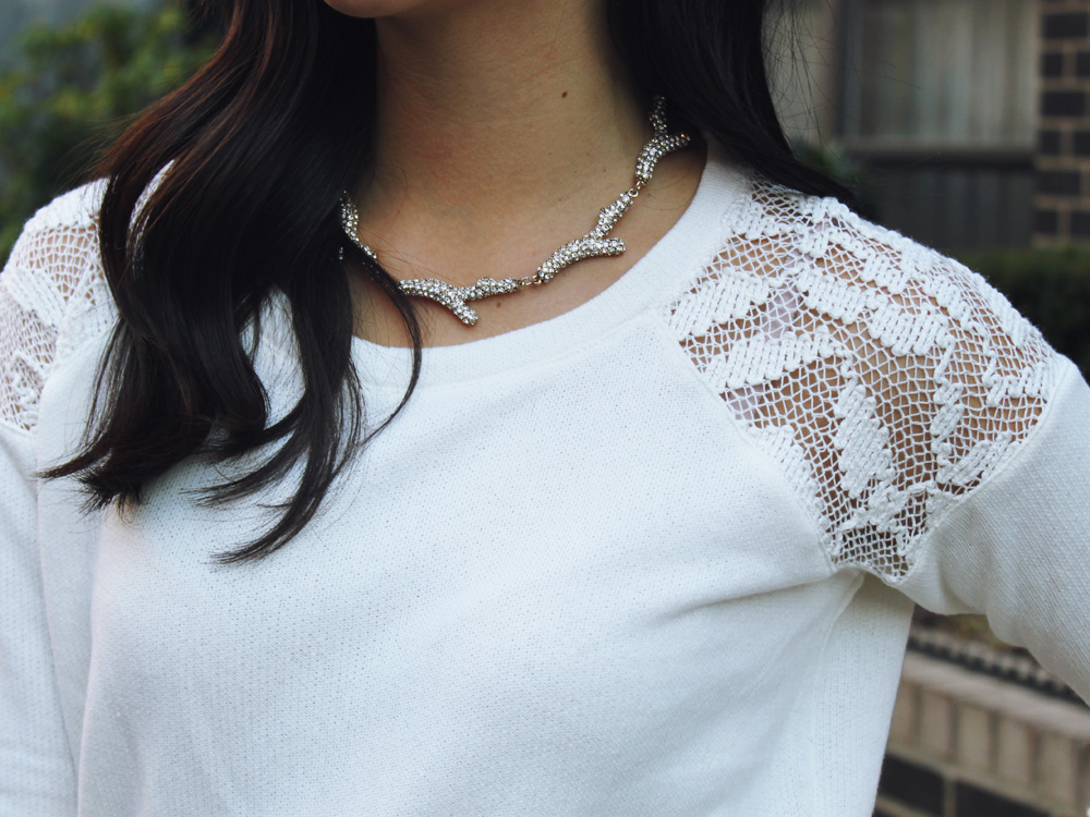 I’m a pop of color kind of gal, through and through, but every now and then, you’ll see me in a pretty neutral outfit. Look closer, however, and you’ll notice that my definition of neutral is slightly tweaked. Leopard and gold are my go-to neutrals, sprinkled with a dash of interesting details like a pave branched necklace and a lacy shoulder sweater. Neutrals do not have to mean normal!