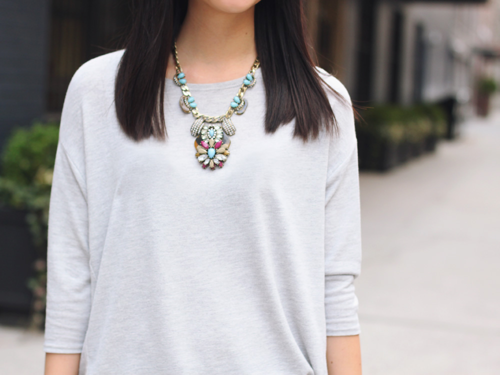Excuse the brevity, but sometimes simplicity can be punctuated with a statement piece or two. For me, an ornate necklace and leopard pumps are all I really need to kick an otherwise ordinary outfit into high gear.